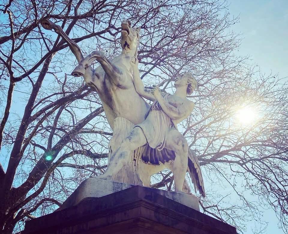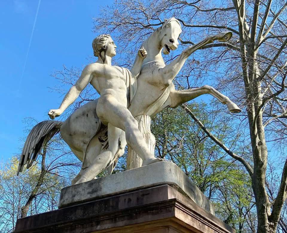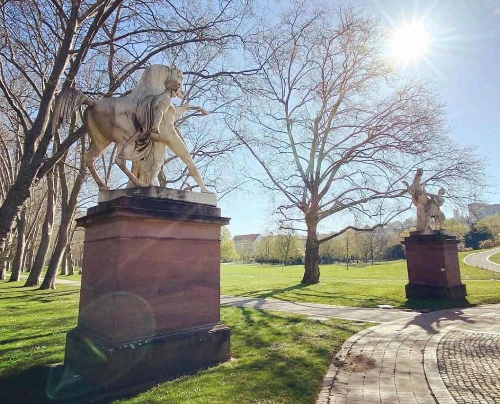 Die „Rossebändiger“ versuchen bereits seit 1848 im Unteren Schlossgarten ihre Pferde unter Kontrolle zu halten. Die beiden Statuen aus Carrara-Marmor bilden den Eingang zur prächtigen Platanenallee, die in den angrenzenden Rosensteinpark führt. Sie ist eines der letzten Zeugnisse der ursprünglichen Gartenanlage die vor über 200 Jahren von Nikolaus Friedrich von Thouret geplant wurde. Damit der Spazierweg so rasch wie möglich fertiggestellt werden konnte, ließ der Bauherr – König Friedrich – 100 Sträflinge zur Baustelle heranziehen. Ausgerichtet wurde die zunächst Schnur gerade und aus 480 Bäumen bestehende Allee, auf den Turm der Cannstatter Stadtkirche im Zentrum des damaligen Kurorts. Vor etwa 100 Jahren, beim Bau des Bahnhofs von Paul Bonatz, wurden die parallel zur Allee verlaufenden Gleisanlagen ausgebaut. Kurz vor dem Rosensteinpark kamen sich Bahngleise und Bäume schließlich in die Quere und daher mussten letztere gefällt und der Verlauf der Allee geändert werden. Aufgrund dessen macht der Weg am oberen Ende nun eine Biegung nach rechts und die nachgepflanzten Platanen sind ein Jahrhundert jünger als ihre Vorgänger. Seit 1998 trägt die Allee den Namen des Komponisten Felix Mendelssohn Bartholdy und steht heute als Naturdenkmal unter besonderem Schutz.